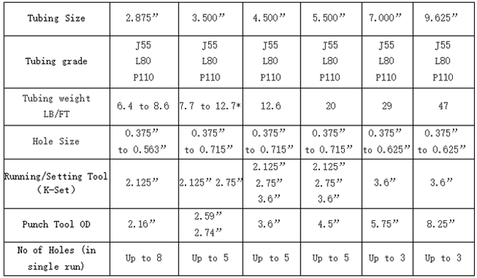 · Punch hole for tubing/casing, be able to penetrate through alloy tubing or thick wall tubing