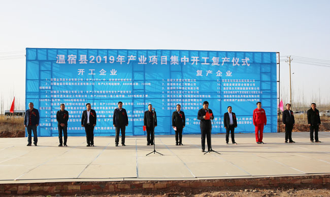 仪式由温宿产业园区管委会主任朱永强主持,温宿县副县长王文彬致辞,他介绍了产业园区2019年的发展目标,对本次集中开工的企业寄予期望,希望大家抢工期、抓进度、快投产、增效益,在推动温宿产业集群发展、改善民生福祉、增加劳动就业等方面发挥示范带动作用,他表示,县政府、产业园区将继续做好各项协调服务工作,千方百计为企业排忧解难,支持项目建设。