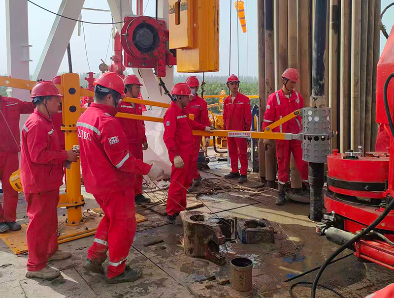 为保障试验顺利推进,武汉三江航天远方科技公司与四川中曼组建现场联合攻关团队,四川中曼顶驱专家蒋谊等骨干人员赴现场开展全方位技术指导,对中曼TDS-500顶驱系统进行智能化定制升级与精准调试,优化关键参数,攻克多项技术难题,确保设备完全满足试验对供电与通信的严苛要求。同时,中曼钻井温宿项目14队平台经理栾习荣带领钻井作业团队,对天车、顶驱、导绳器等设备实施多项创新技术改造,为试验的顺利推进提供了有力保障。
