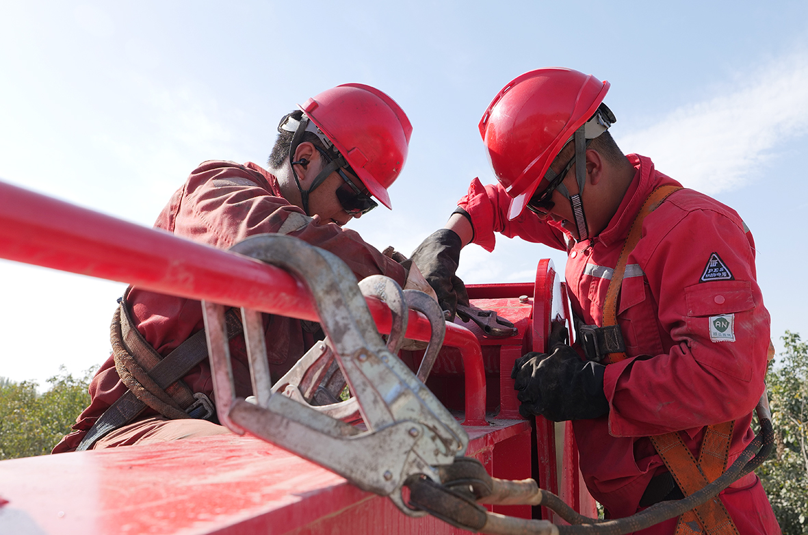 中曼油气总工程师石玉堂介绍,今年已完成26口水平井的钻探任务,目前施工的温29井场的5口井是今年的最后一批水平井,中曼一体化各单位通力协作,力争在10月20日前完成新井投产工作,为油田完成2025年任务目标贡献力量。(中曼油气 文/陈露露 图/尚志刚 实习生 张驰)
