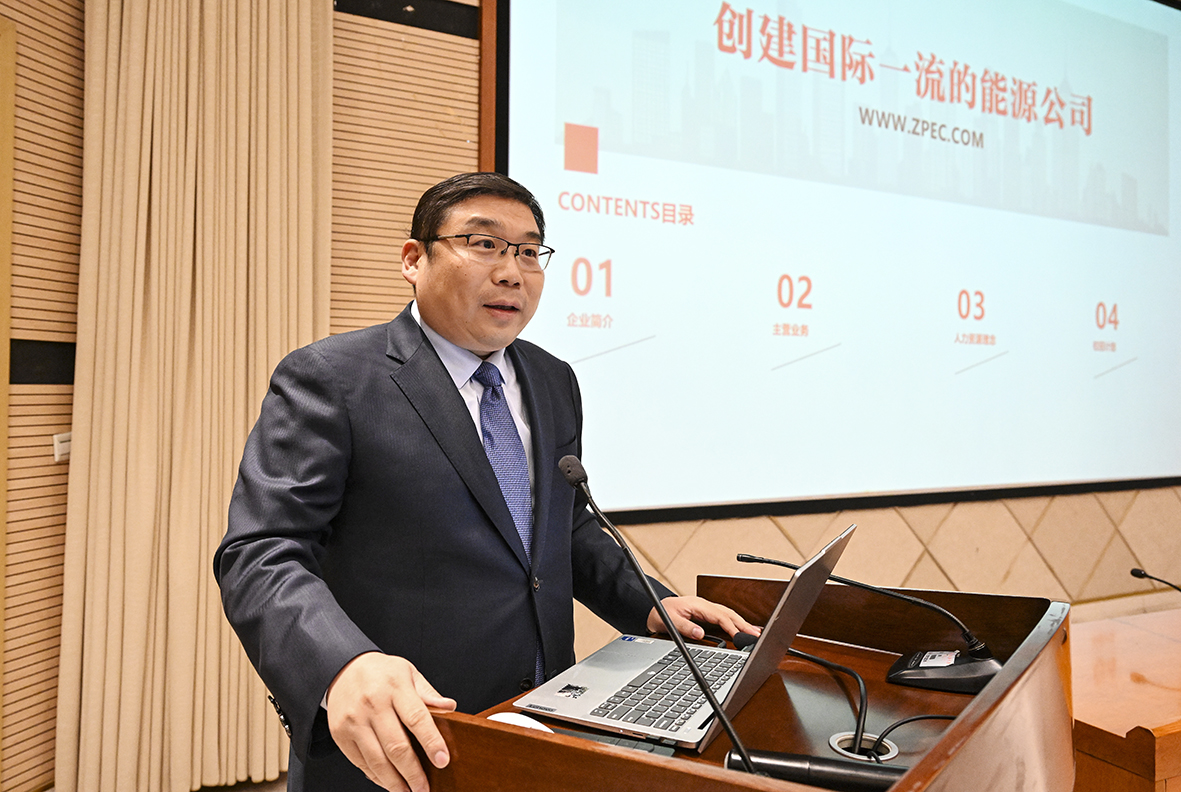 宣讲会开始,李世光向在场师生介绍了中曼集团的发展历程与战略布局。指出,中曼集团自2003年成立以来,已实现从钻井工程服务和装备制造向拥有自主油气资源的勘探开发型企业的战略转型。目前,集团在新疆、哈萨克斯坦、伊拉克、阿尔及利亚等地拥有6个油气田区块,并形成了勘探开发、工程服务、装备制造、国际贸易“四位一体”的全产业链布局,业务覆盖全球30多个国家和地区。在分享企业发展蓝图的同时,李世光鼓励同学们将个人理想融入国家能源事业,在中曼广阔的国际化平台上实现人生价值。