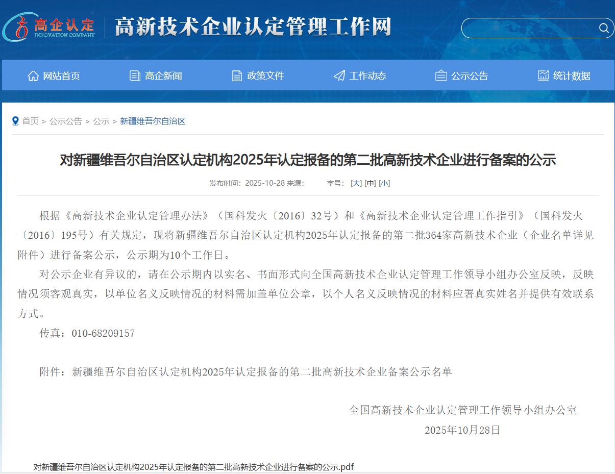 近日,全国高新技术企业认定管理工作领导小组办公室发布《新疆维吾尔自治区认定机构2025年认定报备的第二批高新技术企业备案公示》,中曼油气成功通过新疆2025年高新技术企业认定,此次高新企业复审是对中曼油气技术创新、研发投入、成果转化及综合实力的充分肯定与鼓励,有助于进一步夯实公司发展战略,持续提升创新和综合竞争力。