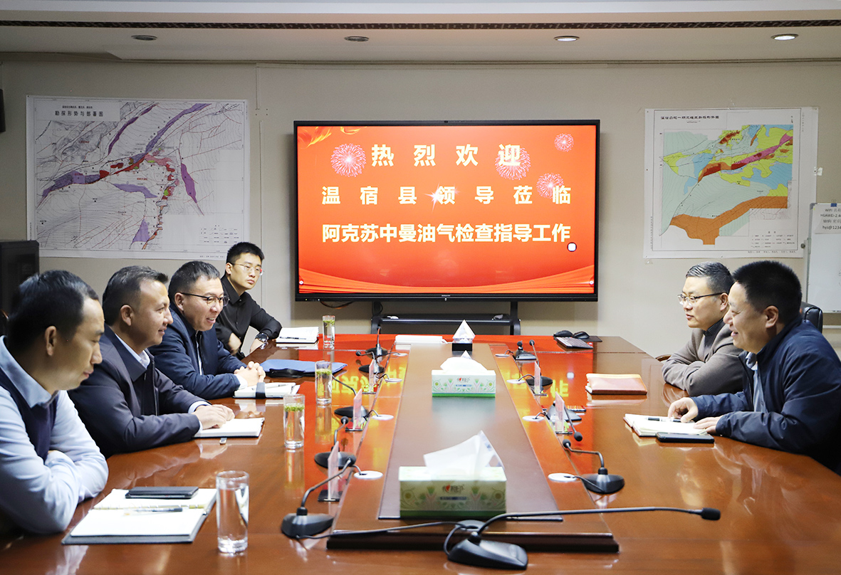 11月18日,新疆温宿县委副书记、代理县长吾卜力·麦麦提一行赴中曼油气调研,深入了解企业生产经营情况和开发建设最新进展,希望双方进一步加强政企沟通对接、深化务实合作,实现互利共赢。