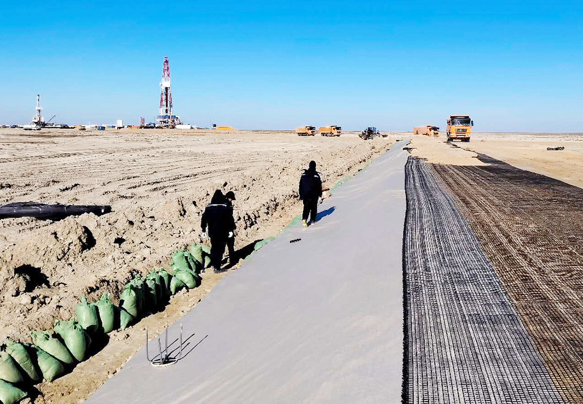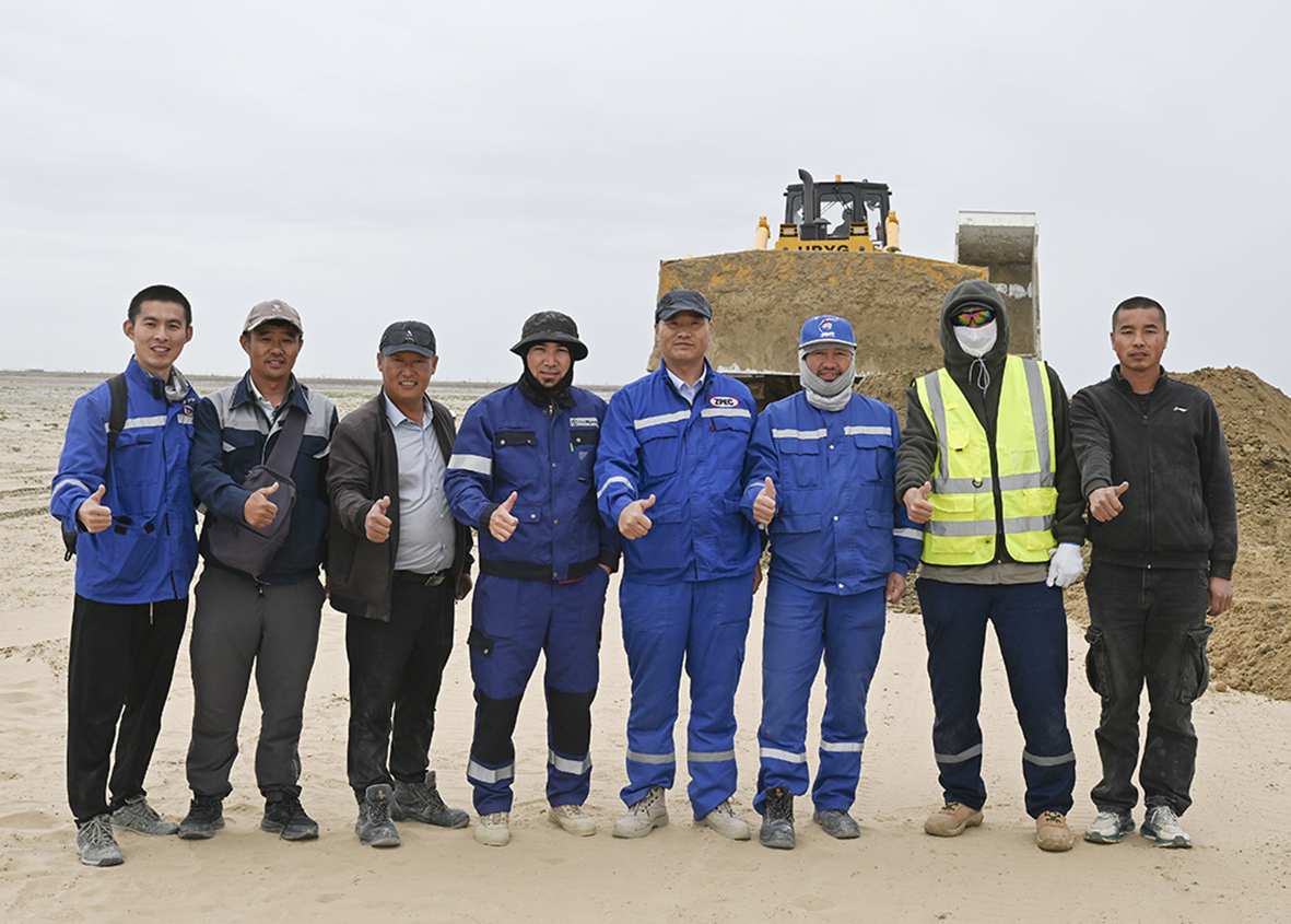 施工过程中,中哈参建人员近百人,夏季直面风沙肆虐、高温炙烤及雨季路面泥泞等难题,冬季妥善应对严寒低温、户外作业难度大等挑战,全力攻克各类施工阻碍。针对盐碱地、软土层等复杂地质条件,创新采用铺设土工布、添加石灰土及砂石加固等工艺优化路基结构,同时巧用废弃材料制作反光路桩,提升夜间行车安全系数,并推行24小时轮班作业机制。在工程负责人陈玉强的带领下,中哈员工携手协作、攻坚克难,充分彰显中曼“铁血之旅”敢打硬仗的优良作风,最终圆满达成各阶段建设目标。(钻井公司 文/张建涛 图/陈玉强)