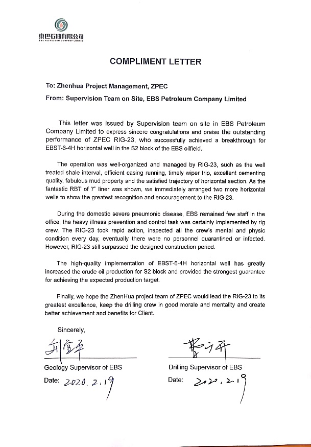 При цементировании 13 добывающих скважин в рамках проекта Petronas Oil потеря циркуляции не произошло в течение всего процесса. После проведения каротажа скважин и оценки качества четырьмя нефтесервисными компаниями, Halliburton, Schlumberger, Weatherford и Oil Service, было зацементировано 13 скважин. Качество является отличным и отвечает требованиям разработки и производства блока, и заказчик одобряет его.