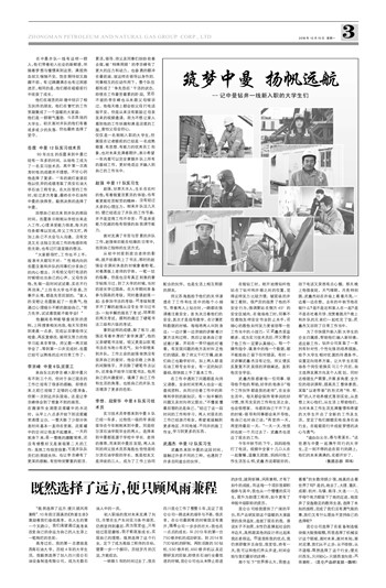 仅仅是一名刚刚入职的大学生,但展现在记者眼前的已经是一名成熟稳重、有思想、有能力的优秀员工形象,也对未来充满着期许,表示希望一年内看可以完全掌握井队上所有的基础工作,更好地适应并融入到自己的工作当中。