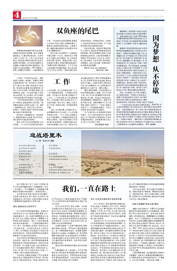 一个有活力的企业总是在不停向前走的,虽然忙碌,但它却向世界展现了自己的生机活力、面对日新月异的世界的姿态。记得花旗银行的一段广告语:“每个夜晚您都会休息, 但您的梦想但依然清醒,因为抱负从不歇息,激情从不歇息,目标从不歇息,希望从不歇息,机会从不歇息,这个世界也从不歇息.所以,我们不分国界,不分昼夜,为您全力实现每个梦想,所以--花旗从不歇息”。愿我们每个人的梦想都不要停歇,用我们实际的努力和汗水,换来新的工作成绩,在自己的岗位上站得更稳,在人生道路中走得更远。(昆仑 赵梓岐)