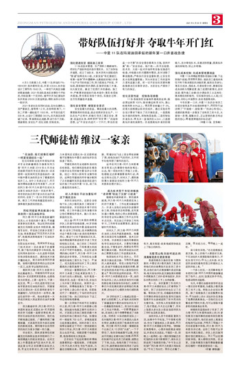 正在钻台下远远观察的师傅杨连善看到这一尴尬场面,才想起刚工作不久的大学生书生气较浓,力量还没锻炼出来,技巧也没完全掌握,就健步如飞走上前去帮徒弟解了围,给他加油打气的同时,又手把手向他传授了操作的技巧。