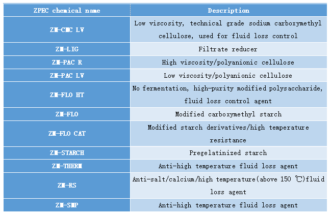 ZM-PAC HV | High Viscosity Polyanionic Cellulose | It is a high-viscosity and high-water-soluble cellulose polymer in the form of a white powder. This product has high molecular weight, and it can encapsulate cuttings, reducing dispersion and inhibit the hydration and dispersion of shale, good viscosity-increasing effect, filter cake thinner and denser. | FL | V | V | s | 25kg/sx | |||