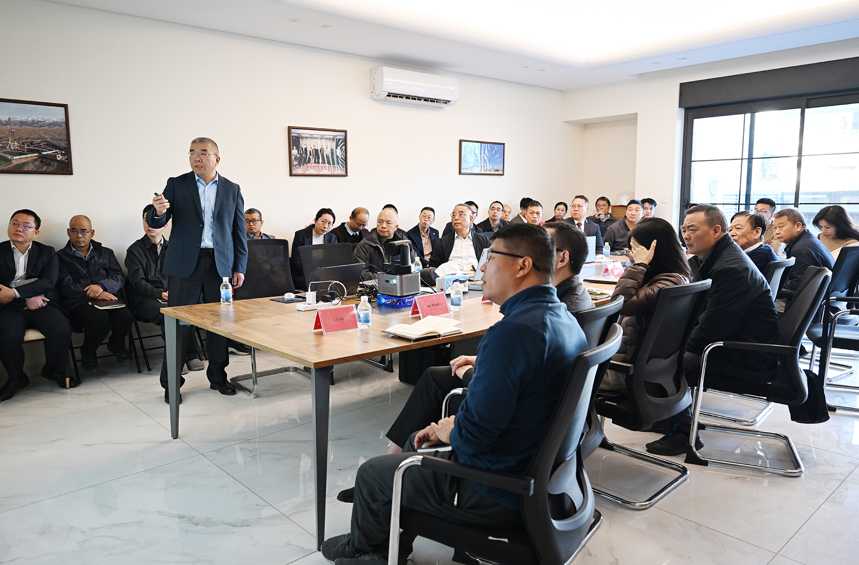12月17日,董事长赴EBN首都油田项目现场考察。当前EBN项目正处于营地建设准备阶段,已完成营地选址;老井修井项目预计将于2026年初进入执行阶段;二维、三维地震采集工作也计划于明年上半年正式开展。董事长在现场重点考察营地选址情况,并就即将开展的营地建设、修井作业组织、地震采集方案与设计优化等具体工作提出指导意见和要求。