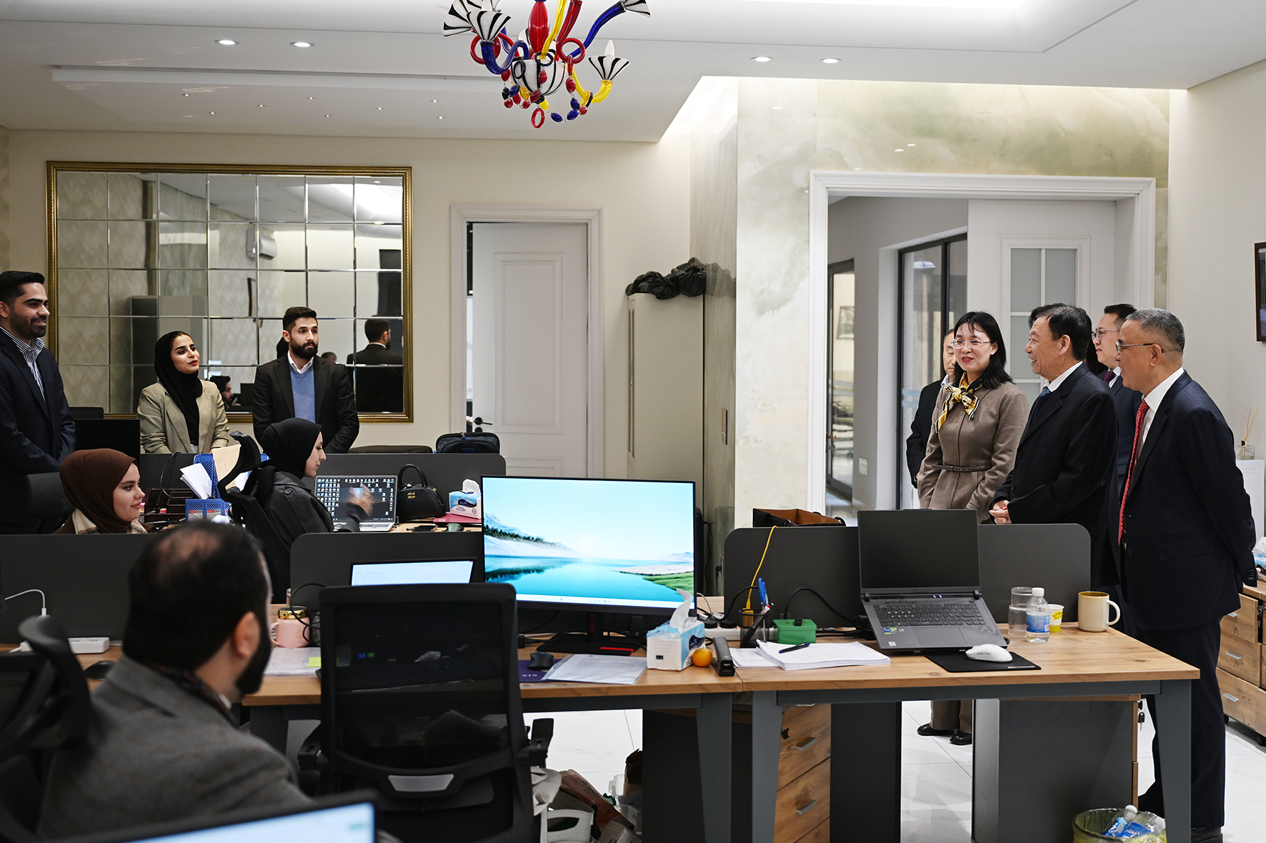 董事长高度重视中伊双方员工的沟通交流。抵达后,他首先专门会见当地雇员,认真听取其加入中曼伊拉克油田项目公司以来的真实感受,并发表讲话,介绍中曼石油的发展历程及在伊拉克油气勘探开发的长期愿景。董事长表示,中曼石油愿为当地雇员提供公平、开放的职业发展平台,鼓励大家在岗位上积极作为、不断提升;同时指出,两项目合同期均为25年,可为当地员工提供稳定、可持续的成长空间。董事长强调,中曼石油将积极履行社会责任,在高质量推进油田开发的同时,带动当地就业,持续开展社会贡献工作,为提升伊拉克人民福祉作出应有贡献。当地雇员对董事长的接见表达了诚挚敬意,表示与中方同事合作愉快,为加入中曼石油深感自豪,愿与公司共同成长、为项目发展贡献力量。