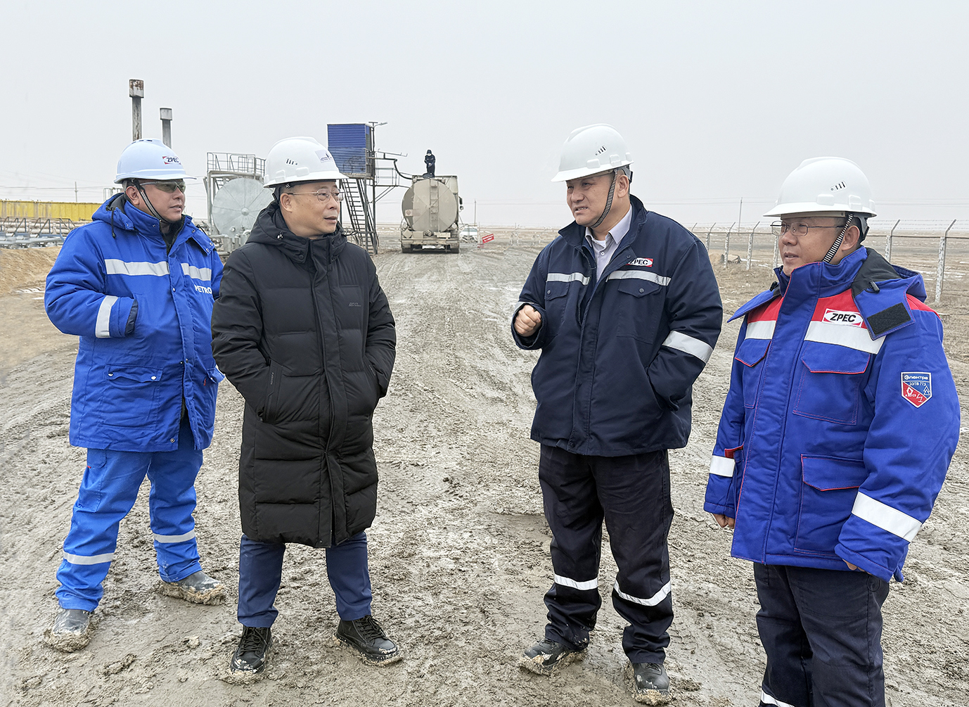 2025年12月30日,集团高级副总裁兼中亚能源总经理陈庆军、PETRO公司总经理蔡永涛一行赴坚戈油田现场检查岁末生产运行情况,并代表集团向奋战在一线的中外员工致以诚挚的节日慰问和祝福。