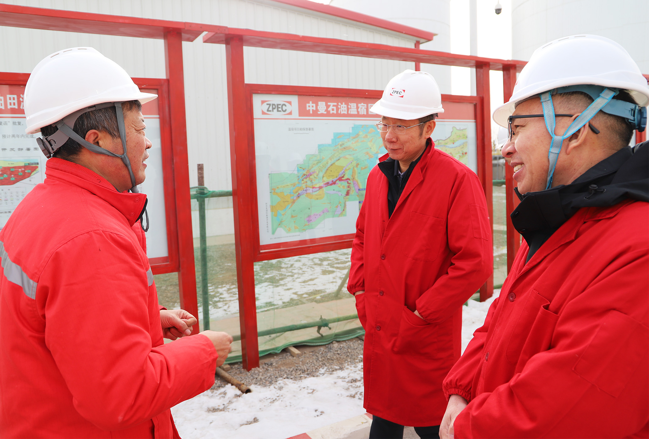调研期间,冯波一行走进中曼石油温北联合站,通过实地察看和现场交流,详细了解中曼集团和油气公司发展概况、温宿区块基本情况、温7区块产能建设项目成效及未来发展规划等。