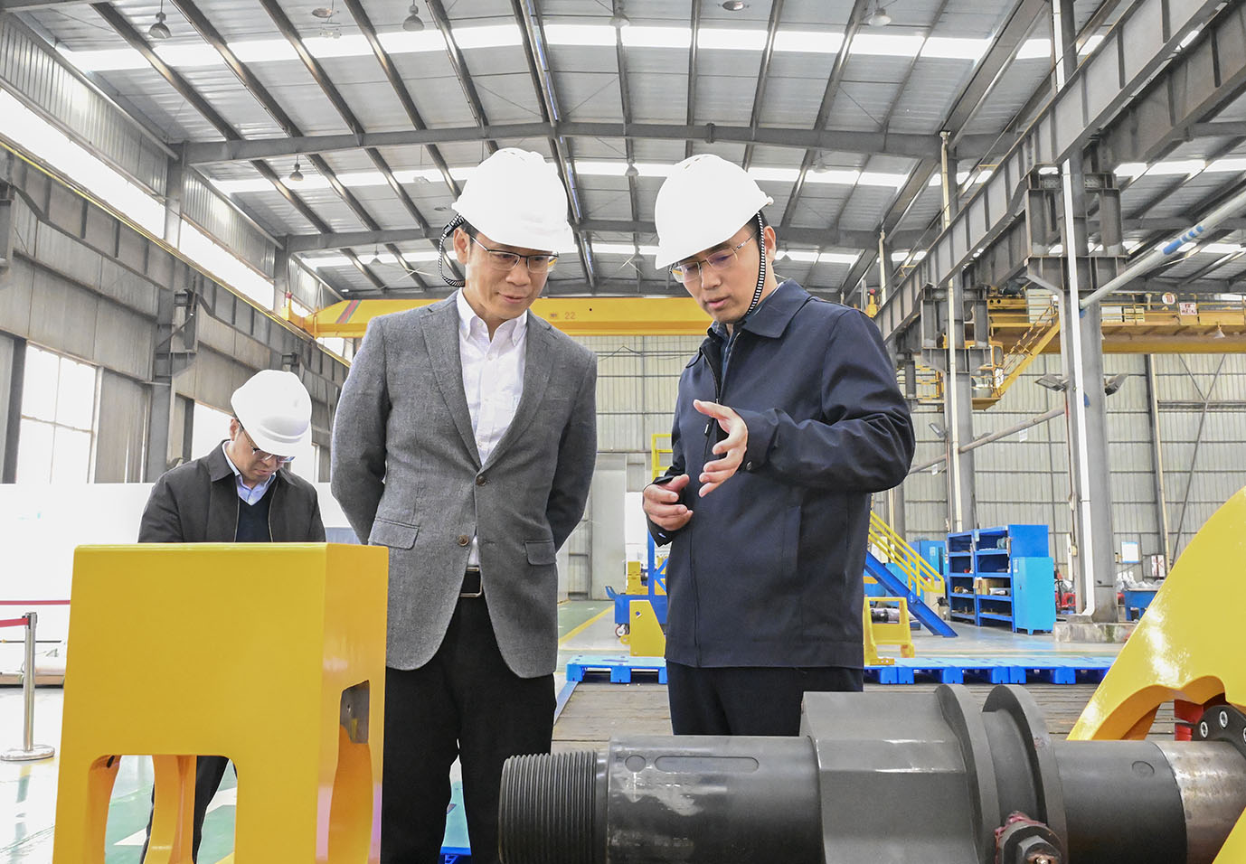 董云帆一行深入生产车间,实地察看电控系统、顶驱、钻头及钻机等核心产品生产线。车间内机器轰鸣,焊花飞溅,各条生产线满负荷运转,一派繁忙景象。