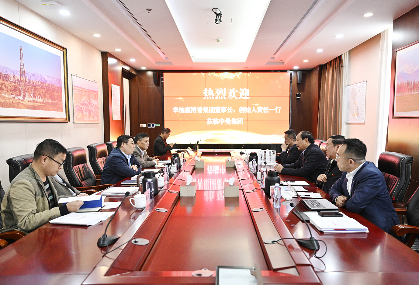 李世光对黄松一行的到访表示欢迎,并介绍了中曼集团在油气勘探开发与工程服务领域的全球业务布局及最新项目进展。他表示,目前,中曼现有海外5个油气田的重点项目正稳步推进,并在油气勘探领域取得多项重要突破,随着业务纵深发展,中曼需要与具备核心技术能力和丰富国际项目管理经验的企业建立长期合作的伙伴关系,华油惠博普集团聚焦能源服务领域,是国内一流的能源服务企业,双方在技术协作,资源整合及国际项目合作等方面具有广阔的合作前景。