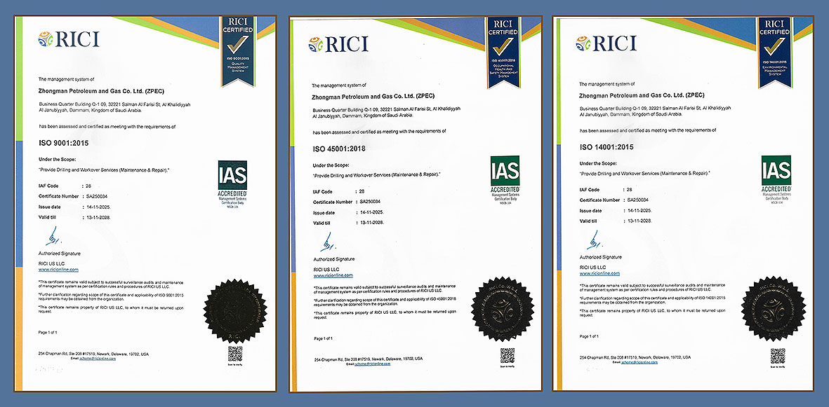 现场审核期间,审核组依据 ISO标准及当地法律法规要求,采用“文件审查、现场核查与人员访谈”相结合的方式,对管理体系进行全方位评估。审核范围覆盖钻井作业、设备运维、现场安全等关键环节。沙特公司凭借完善的制度体系、规范的过程记录、有效的风险管控机制及稳定的运行成效,获得审核组高度认可,最终一次性通过全部认证,实现“三体系”同步达标。(沙特公司 孟祥龙)