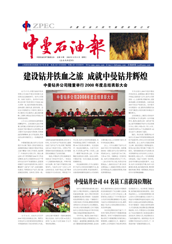 中曼集团副总裁、钻井公司总经理石书义做了题为《坚定发展信念迎接新的挑战 为建设中曼钻井铁血之旅不懈奋斗》的工作报告,他回顾了一年来钻井公司的工作,指出,通过深入学习贯彻集团 2008 年工作会议精神,钻井公司按照李总关于“带好队伍打好井”的重要指示,紧紧围绕集团下达的年度经营目标,坚持不懈地抓“三基”达“三标”,全面加强队伍建设,不断强化生产运行,强力推进规范化管理,全体员工团结一致,克服资金短缺等重重困难,抓住有力时机,大打钻井生产的进攻仗,超额完成了全年生产计划,实现了集团提出的 40 万米进尺目标,主要生产经营指标均创历史最高纪录,为中曼集团的发展做出了应有的贡献。