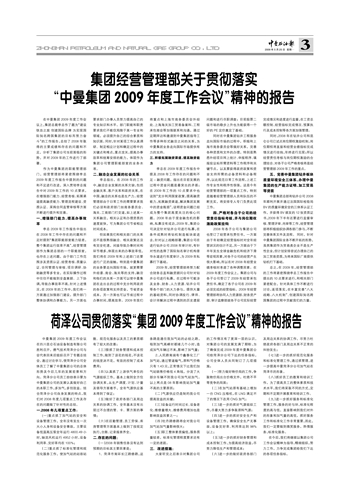 集团经营管理部关于贯彻落实“中曼集团2009年度工作会议”精神的报告