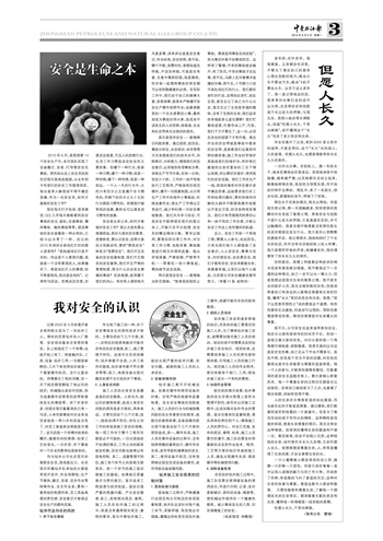 总之,安全工作是一个系统工程,需要人人参与,处处防范,只有当我们每个人都提高了安全意识,人人讲安全,事事为安全,时时想安全,处处要安全,我们才能有安全。安全承载着生命,承载着幸福,让我们从每个人做起,为实现公司安全健康发展而努力。(中曼11队 纪华兴)