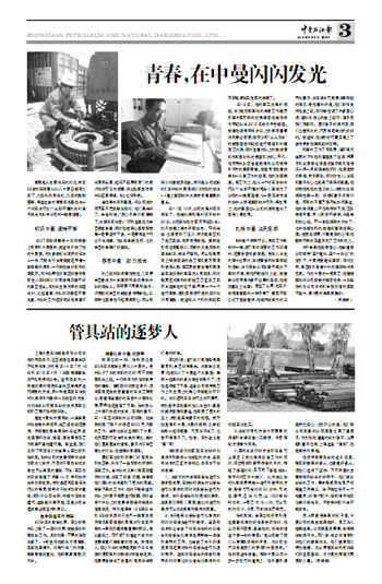 青春是人生最快乐的时光,今年32岁的陈晓荣从加入中曼已经有九年了,九年的风雨洗礼,九年的酸甜苦辣,在这过去的青春年华里他由一个对石油行业什么都不懂的农村孩子成长为如今公司的一线管理者。
