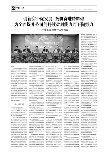 今天我们在这里集会,隆重召开中曼集团2017年度工作会议,并对各单位涌现出来的先进集体和个人进行表彰,具有十分特殊的意义。2016年,是公司大力推行改革创新的一年,也是在逆境中取得巨大突破的一年。在国际油气行业低迷、同行企业业绩大幅下滑的不利形势下,我们全年的营业收入、市场开发和盈利水平超出预期,为公司的跨越发展迎来了新的机遇.