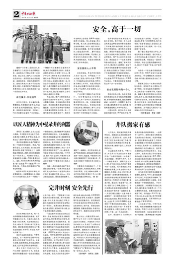 小郭告诉我,刚毕业不久他就被派到国外项目,刚开始的时候,他对安全也是一无所知,不过到了井场以后,有专门的师傅带他,他不光学到了很多专业知识、安全知识,安全意识也有了很大提高,有一次还获得了安全奖。