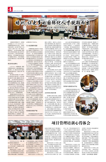 在为期十天的培训中,每日从早到晚安排的满满当当,针对学员自身工作情况及公司实际需要,此次培训主要涉及工程项目管理理论、国际标准项目管理知识体系、Project软件基础知识及应用、敏捷项目管理知识体系、项目集管理知识体系五个板块,主要包括石油天然气工程项目管理、合同管理、钻井工程等十八个章节的课程,详细具体涵盖了项目管理的方方面面。培训中心教授张丽向记者介绍,“以前采用的管理方法都是经验式,依靠人、人的素质,人的积极性,西方的项目管理制度化、规范化、科学化,让人按照制度、流程办理,提高管理的可重复性,让管理受控,学习好项目管理,让中曼集团赶超世界著名的石油公司,屹立于世界优秀企业管理之林。”
