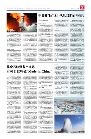 同样的故事每天都在世界的各个角落里发生,这些故事的缔造者,是一批敢闯敢干、精耕细作的中国民营高科技企业,与大型央企相比,近些年中国民企凭借小而精、小而强、细而专的特点,已经成为“一带一路”乃至全球市场不可或缺的一支力量,民企中曼石油装备集团的发展就是中国民企放开手脚闯世界的真实写照,这些年,他们带着中国的工匠精神漂洋过海,在石油装备领域一次次叫响了中国制造的品牌。